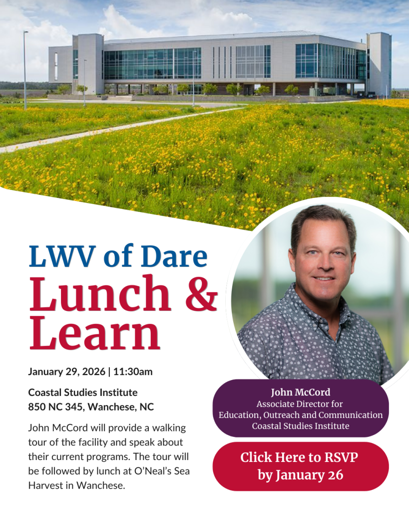 The League of Women Voters of Dare County is a nonpartisan, grassroots, organization working to protect and expand voting rights and ensure everyone is represented in our democracy.